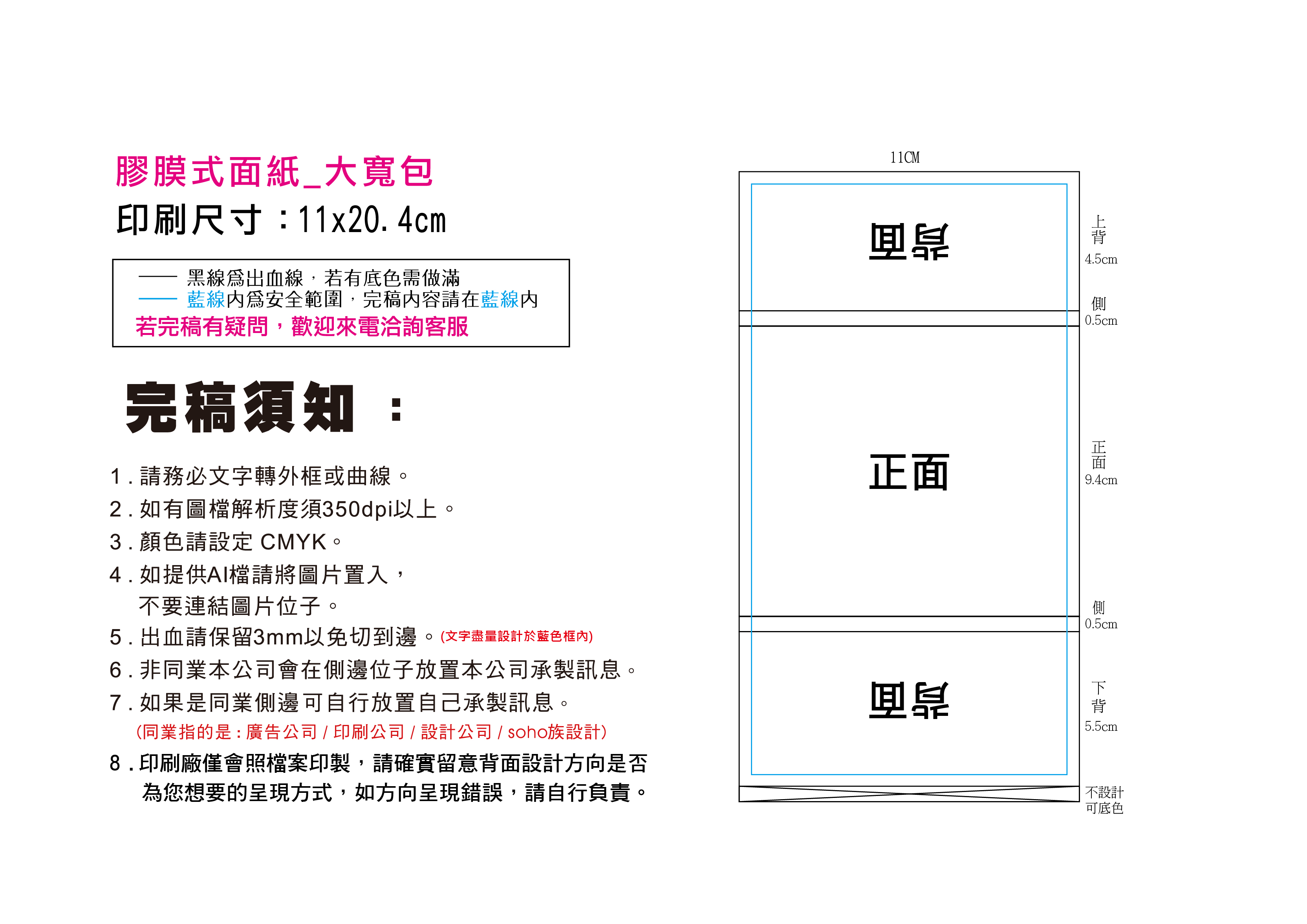 §價格相同可任選袖珍包、袋鼠包、大寬面紙- 1. 印刷面在塑膠膜上