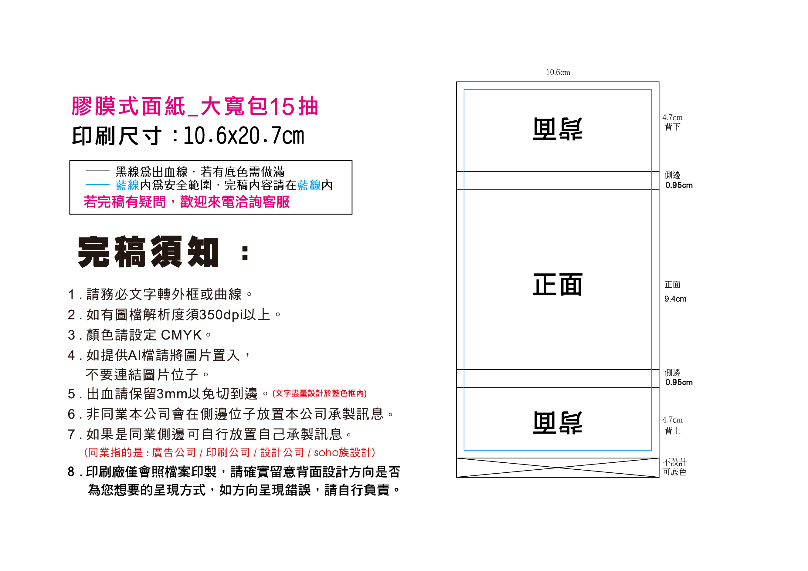 客戶自行提供完整美工檔案(AI/CDR),面紙達人再提供更優惠價格給您!