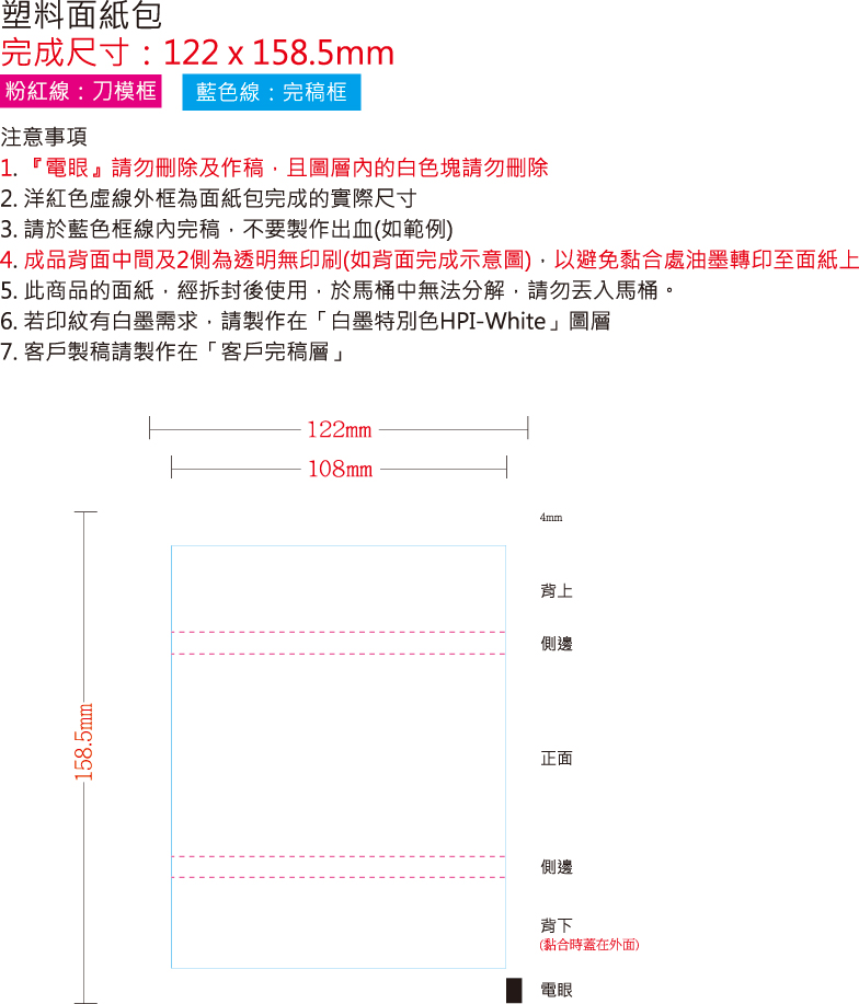 8抽 塑料包面紙 含彩色版費- 外觀尺寸:11.5*6.3